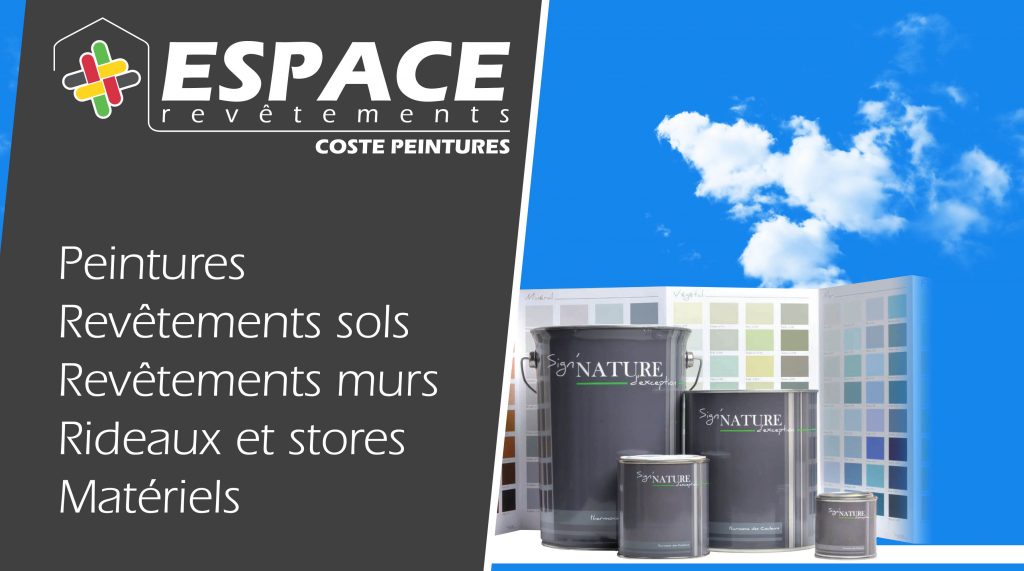Création de 7 bâches pour l’aménagement des vitrines pour le magasin Coste Peintures à Montpellier, Près d’arènes. Ces bâches sont en tissu perforé.